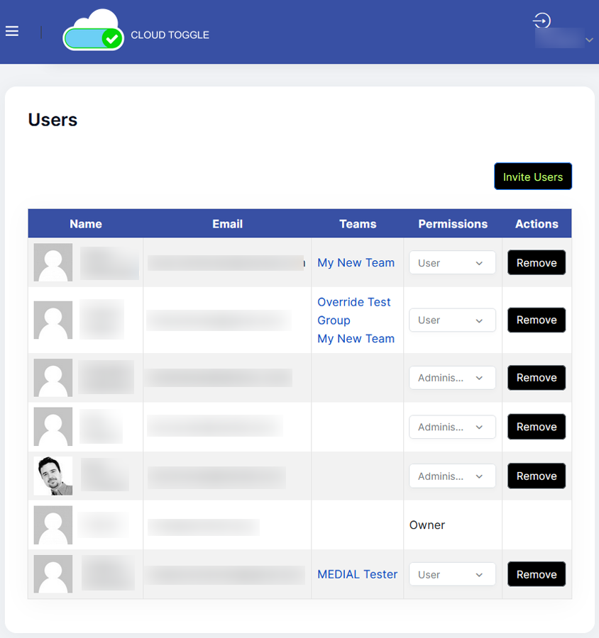 Unlike AWS, Azure, and other providers, CLOUD TOGGLE lets you share access to these features without letting people into the entire account. Create users and role-based teams so the right people can take action when they need to.